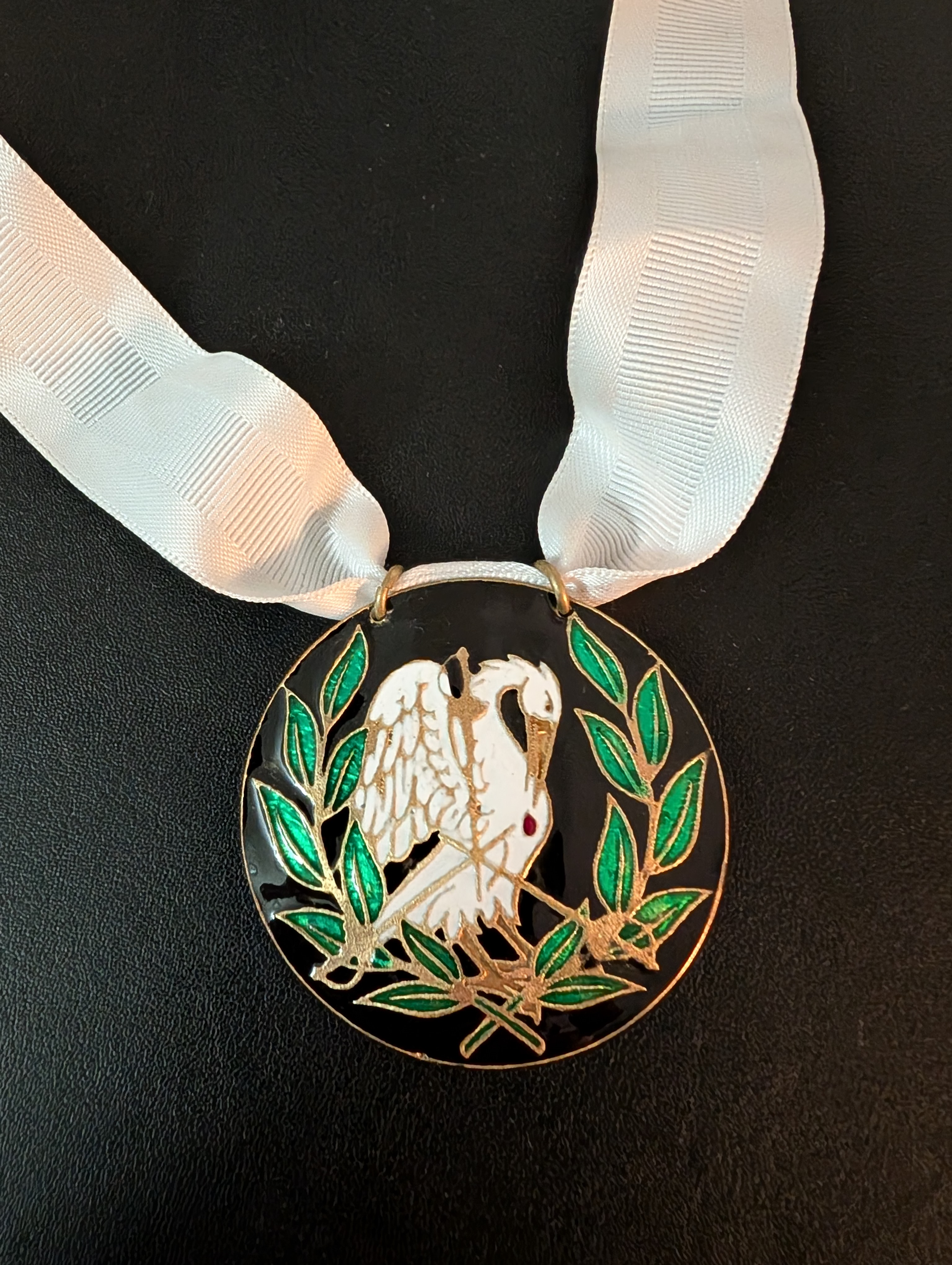 Her Majesty Arielle gave me this scarf following my prize. It has her badge, a gazelle, and the badge of the Order (Overall 3.75 x 41"):